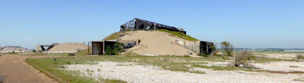 Lab 1 is a very substantial and unique building. A large 600mm thick, reinforced concrete raft was supported by 60 concrete piles going down to the water table. A large reinforced concrete pit was incorporated to simulate the aircraft bomb bay. Reinforced concrete walls rose from the raft incorporating a number of equipment and service rooms. Shingle was then banked up all around the building to roof level.
