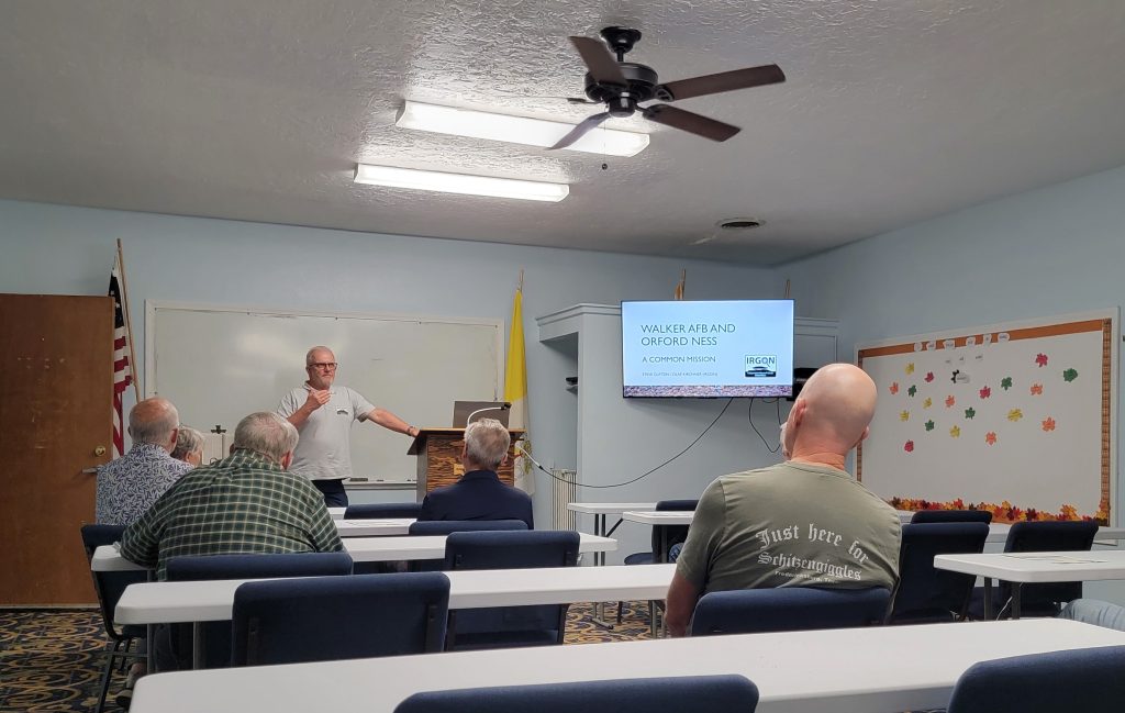 IRGON undertook a substantial research trip to the United States. The research was mainly concentrated on the AFTAC “R” OTH radar system which was installed at Orford Ness. We surveyed the site of the prototype at Muirkirk, MD, interviewed the chief designer of the system, and surveyed the site of the first operational system in the desert at Roswell. The picture shows a talk given by IRGON at Roswell entitled “Walker AFB and Orford Ness: A Common Mission”. A PDF version is available here.